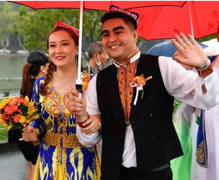 10月6日,第23屆中國西湖情玫瑰婚典在浙江杭州浪漫上演,來(lái)自全國各地56個(gè)民族的100對新人受邀在西湖景區牽手漫步,喜結連理。