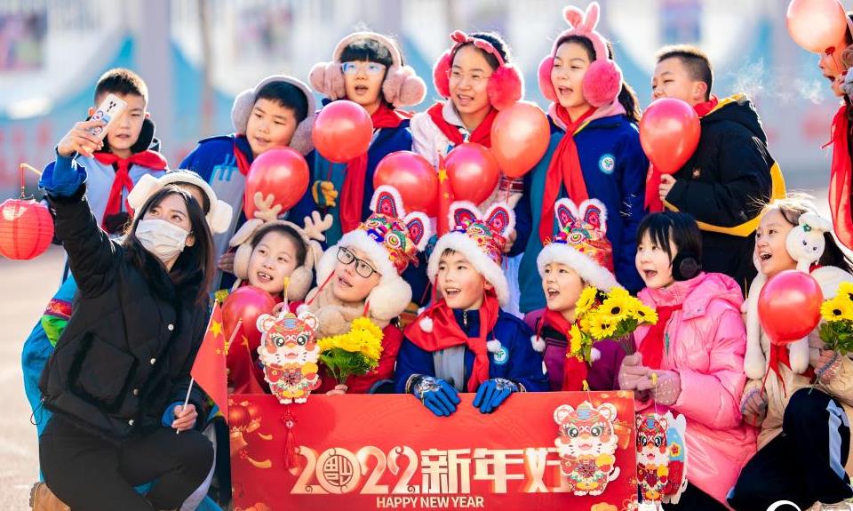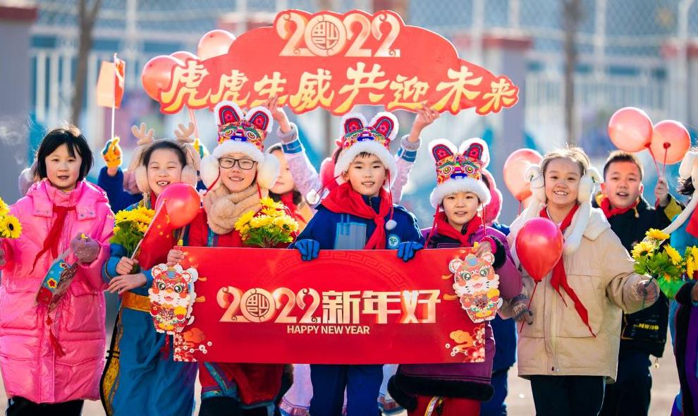 2021年12月31日,內蒙古呼和浩特市玉泉區南柴火市街小學(xué)開(kāi)展“2022 虎虎生威 共迎未來(lái)”迎新年主題活動(dòng),師生通過(guò)繪制生肖虎、快閃、拍攝創(chuàng )意合影等方式,在歡聲笑語(yǔ)中迎接2022年的到來(lái)。