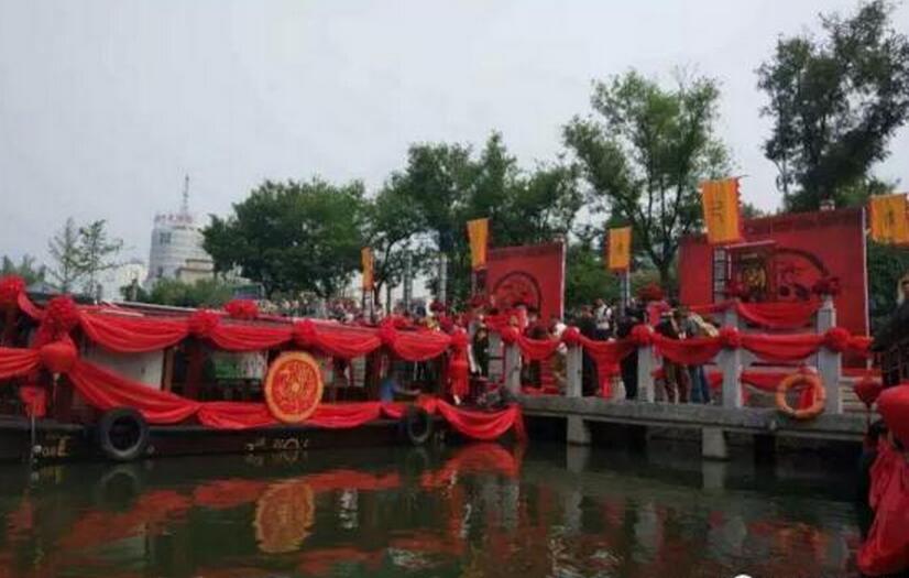 6月25日上午,一場(chǎng)別致的漢服水上婚禮在護城河上演。