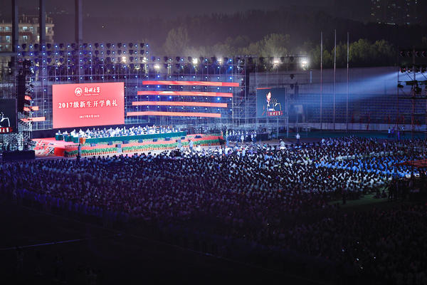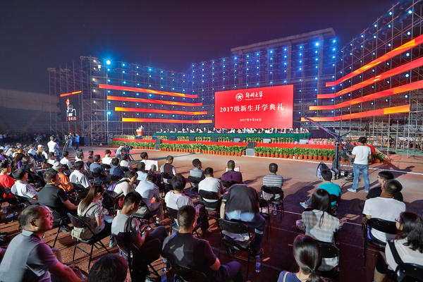 師長(cháng)演講中的諄諄教誨流露出對學(xué)生的愛(ài)與期盼。在開(kāi)學(xué)典禮上,鄭州大學(xué)校長(cháng)劉炯天發(fā)表熱情洋溢的致辭,強調在這里同學(xué)們將度過(guò)一個(gè)豐富多彩、充滿(mǎn)挑戰、不斷成長(cháng)的大學(xué)生涯。鄭州大學(xué)將為大家的成長(cháng)提供最強大的支持。會(huì )上學(xué)生及家長(cháng)代表也發(fā)表演講。稍后進(jìn)行的文藝表演更是讓會(huì )場(chǎng)變成霓虹燈的海洋,不管是動(dòng)聽(tīng)的歌曲,還是幽默詼諧的小品,都引起初入大學(xué)的新生們的連連驚嘆。最后開(kāi)學(xué)典禮在現場(chǎng)數萬(wàn)師生齊唱《相親相愛(ài)一家人》中完美落幕。