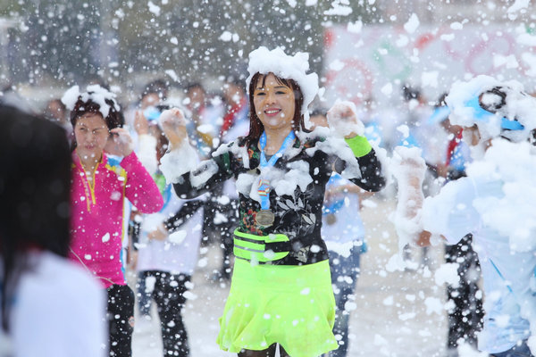 “第一次參加泡泡跑,特別好玩,像是回到了童年和小伙伴一起嬉鬧的日子!蓖跸壬嬖V記者,“這是我第二年參加如新健康中國行了,去年和小伙伴在如意湖畔玩的特盡興,如新健康中國行總是很有趣,好樣的!”