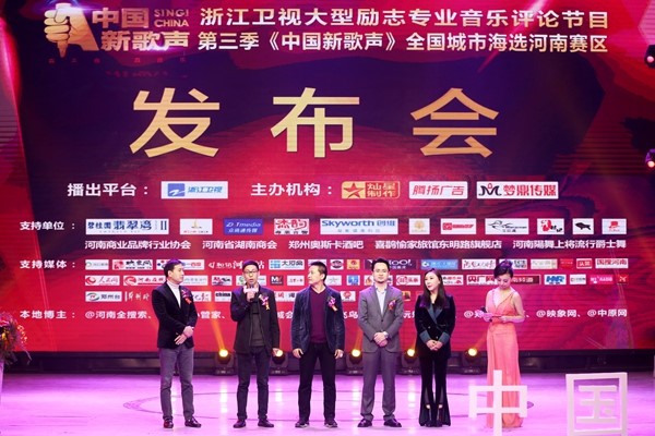 11月19日下午,第三季《中國新歌聲》河南賽區發(fā)布會(huì )在鄭州舉行。全國海選負責人葛中華,湖北、安徽、云南賽區等核心負責人,浙江衛視導師戰隊曾敏杰、邵元及上季各省賽區冠軍學(xué)員趙晨、王榕、劉佳霖等助陣現場(chǎng)。