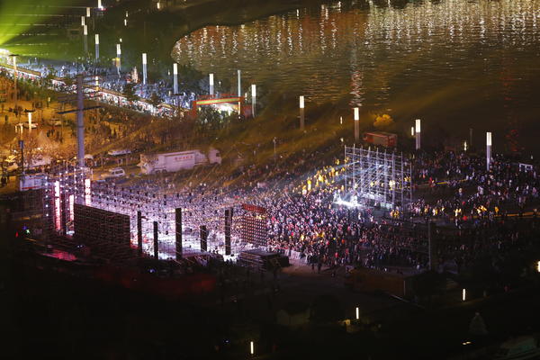 意義非凡的跨年時(shí)光絕不可辜負,為能使沒(méi)有機會(huì )親臨現場(chǎng)的廣大網(wǎng)友感受燈光秀的震撼,大河網(wǎng)記者自2017年12月31晚8時(shí)左右便奔赴現場(chǎng)挑選絕佳的拍攝位置,4個(gè)多小時(shí)的奔波與寒冷只為讓你收到燈光映照下的新年祝福。十多分鐘的節目雖然短暫,但新年的祝福已經(jīng)伴隨那無(wú)數燈光照亮每個(gè)角落,傳遞到所有人身上,2018將全新起航!