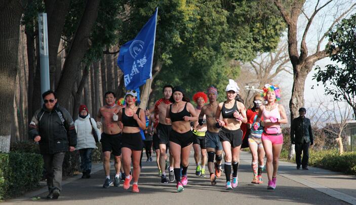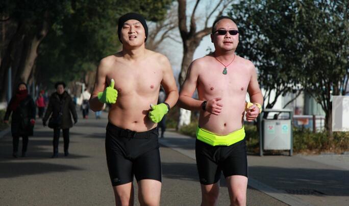 2018年1月13日,江蘇省南京市,清晨八點(diǎn)多,南京氣溫零下3度,近百名健身愛(ài)好者脫去厚重的外套,身著(zhù)泳衣、短褲等環(huán)玄武湖進(jìn)行“光豬跑”,通過(guò)獨特的方式迎接即將到來(lái)的農歷新年,也是向人們倡導親近自然、積極健身的健康生活方式。