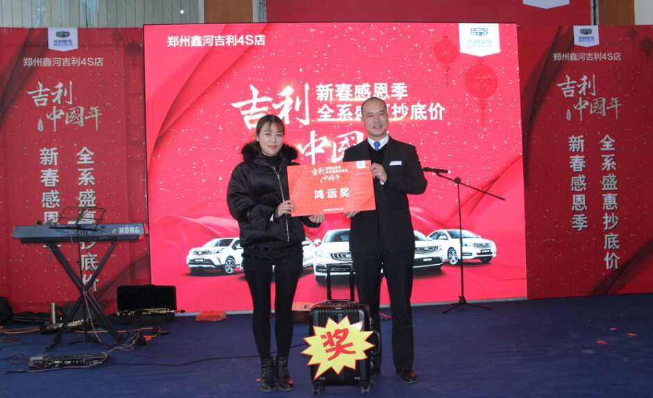 吉利中國年——新春感恩季 全系盛典抄底價(jià),有河南星光秀文化傳媒有限公司承辦,2018年1月13日下午兩點(diǎn)到四點(diǎn)三十分在鄭州鑫河吉利4S店圓滿(mǎn)落幕。