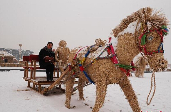 吉林農民喬明儒與20多名農場(chǎng)工人歷時(shí)20多天,用3萬(wàn)捆稻草建了一座“稻草公園”。占地2.4萬(wàn)平方米的公園內,除了農家小院、豐收場(chǎng)院等場(chǎng)景,還有形象逼真的“稻草獅子”“稻草馬”“稻草大象”等動(dòng)物。