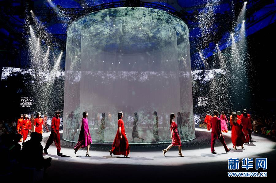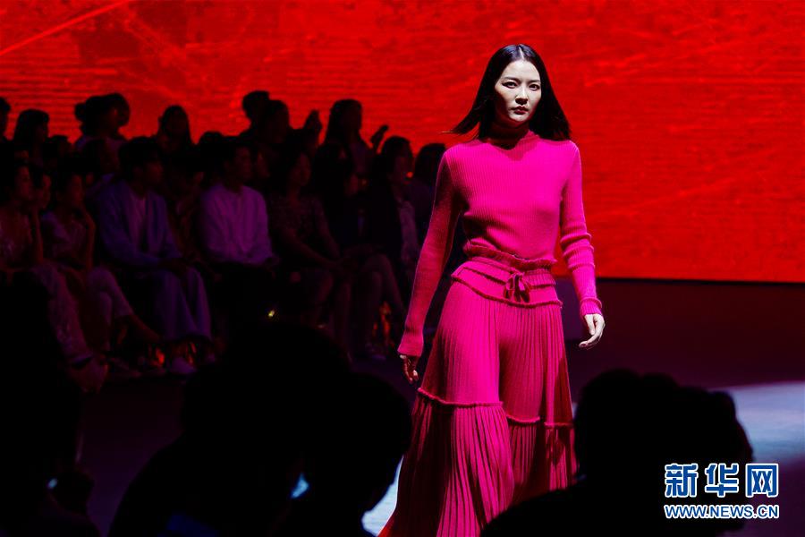 9月3日,模特在2019北京時(shí)裝周開(kāi)幕大秀上展示服裝作品。