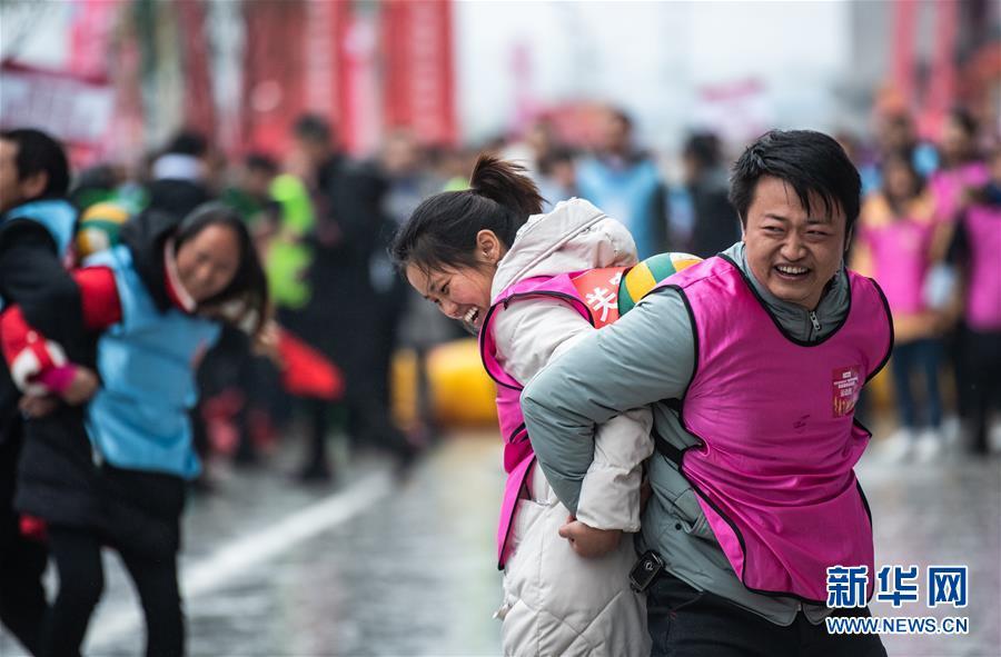 1月18日,來(lái)自當地易地扶貧安置社區的群眾參加旱地龍舟比賽。 當日,“紅紅火火過(guò)大年⋅多彩貴州迎新春”社區趣味運動(dòng)會(huì )在貴州六盤(pán)水市六枝特區舉辦。來(lái)自郎岱、龍場(chǎng)等12個(gè)易地扶貧安置社區的600余名群眾,在聚福新苑易地扶貧小區參加了旱地龍舟、勇挑重擔、投壺、拔河等趣味運動(dòng),開(kāi)心快樂(lè )迎接新年到來(lái)。