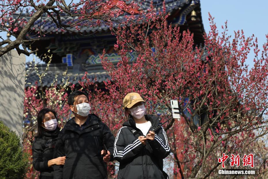 2月22日,游人在南京東郊梅花山賞梅拍照。近日,受新冠肺炎疫情影響而關(guān)閉的南京梅花山開(kāi)放,“淡妝宮粉”、“粉紅朱砂”、“江南宮粉”等梅花品種陸續盛開(kāi),吸引民眾前來(lái)徜徉花海沐浴春光。據悉,為確保安全,所有進(jìn)入景區的人員需要佩戴口罩,并進(jìn)行體溫測量。