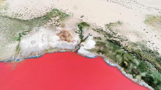 內蒙古格勒圖湖有個(gè)“少女心” 美艷大漠風(fēng)情