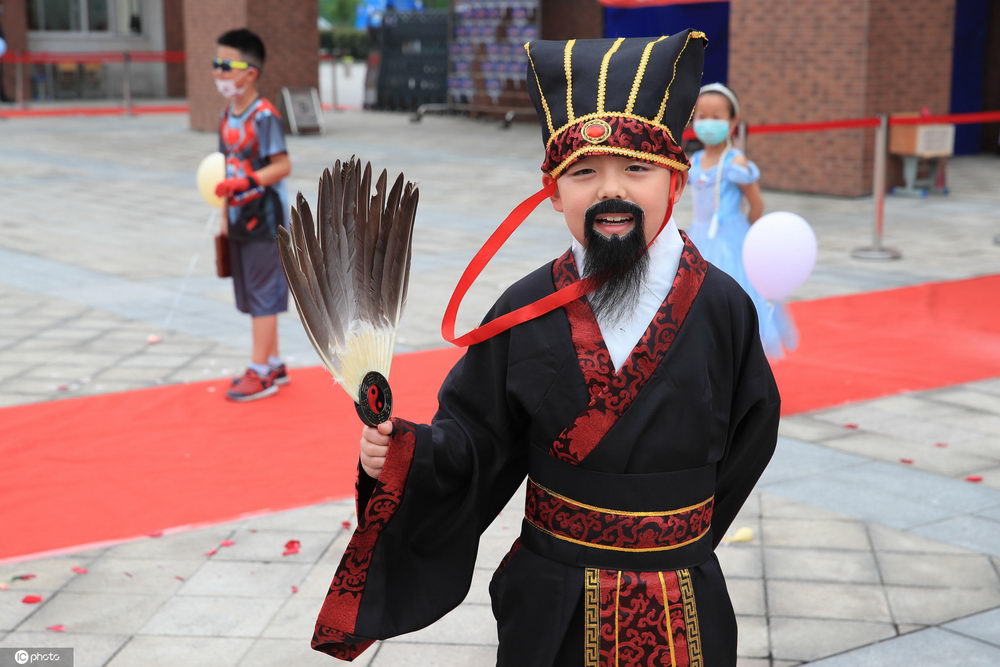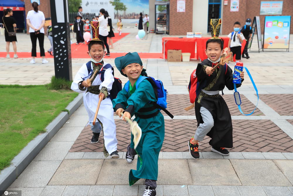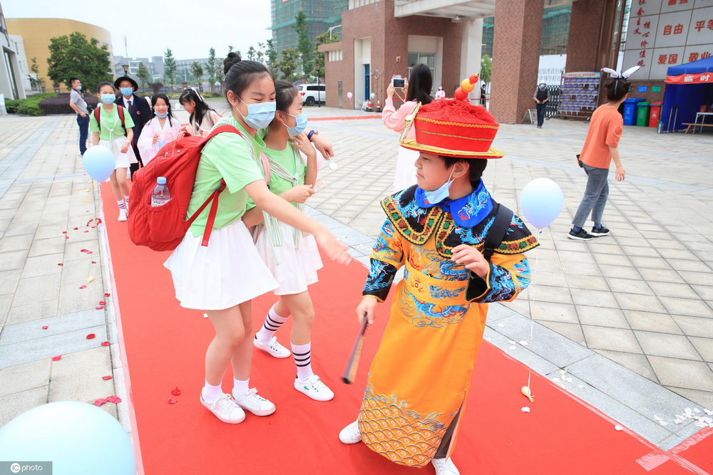 2020年6月1日,浙江寧波,同學(xué)們身著(zhù)奇裝異服走進(jìn)校園。當天,寧波奉化龍津實(shí)驗學(xué)校舉行“百變模仿秀”活動(dòng)。一早,同學(xué)們身著(zhù)自己喜歡的服飾、造型在鋪著(zhù)紅毯的校門(mén)口進(jìn)行走秀,有的是“皇帝”,有的是“蜘蛛俠”,有的是“哪吒……各種人物形象發(fā)揮出孩子們的創(chuàng )意,歡樂(lè )過(guò)六一。