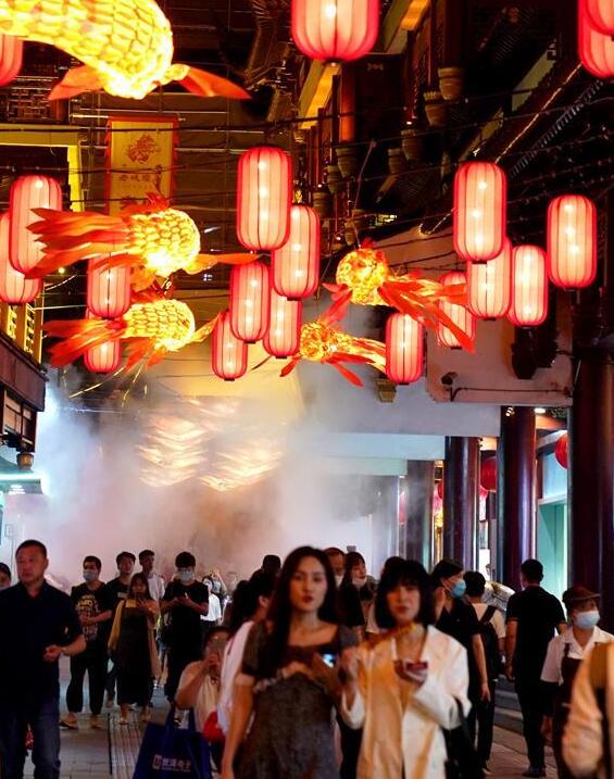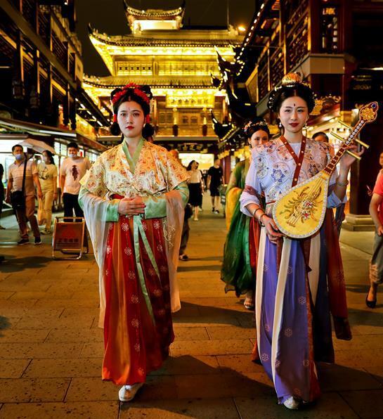 7月3日,上海豫園內舉行古裝巡游活動(dòng)。 從7月第一個(gè)周末起,上海豫園原有的“豫園六點(diǎn)半”集市全面升級,煥彩燈光、演藝活動(dòng)和花車(chē)集市全線(xiàn)更新,讓市民和游客在觀(guān)燈、觀(guān)人、觀(guān)演的沉浸式體驗中,享受夏日特色的“食玩”樂(lè )趣。