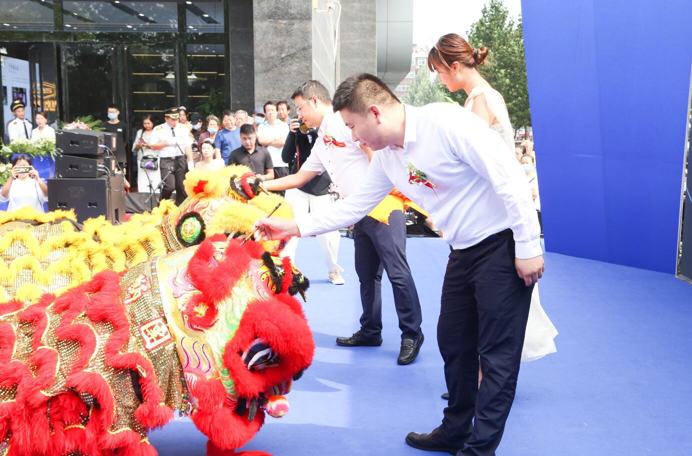 祥獅點(diǎn)睛,福瑞大地。點(diǎn)睛儀式中,中梁控股集團邯鄲事業(yè)部總經(jīng)理羅明佳和中梁控股集團邯鄲事業(yè)部副總經(jīng)理陳慶亮以“神來(lái)之筆”為醒獅點(diǎn)睛。被喚醒的獅子歡騰起舞,翻騰跳躍,栩栩如生,象征著(zhù)中梁邯鄲首作未來(lái)紅紅火火,生機無(wú)限。