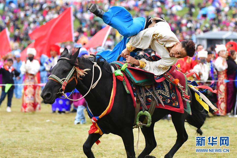 8月31日,藏族騎手在當周草原上表演馬術(shù)。 當日,第二十屆九色甘南“香巴拉”旅游藝術(shù)節在甘肅省甘南藏族自治州當周草原舉行。人們身著(zhù)節日盛裝載歌載舞、歡聚一堂,馬隊巡游、千人鍋莊舞、房車(chē)嘉年華、民族服飾展演等活動(dòng)精彩上演。 近年來(lái),甘南州依托豐富的旅游資源,大力推動(dòng)文旅融合發(fā)展,多業(yè)態(tài)的全域旅游新格局成為脫貧攻堅的重要抓手,進(jìn)一步帶動(dòng)農牧民增收致富。
