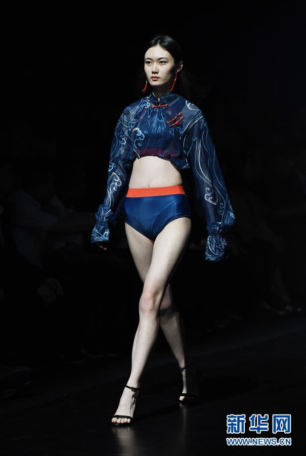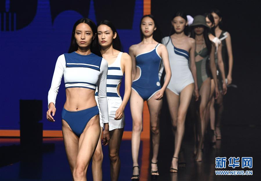 9月1日,模特在“泳享青春 不負未來(lái)”第五屆互聯(lián)網(wǎng)時(shí)尚設計大賽決賽上展示服裝。 當晚,以“新銳力量——原力覺(jué)醒”為主題的東方時(shí)尚季·第20屆中國(青島)國際時(shí)裝周落下帷幕。