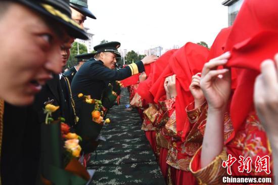 9月20日,諧音“就愛(ài)你”,當日,火箭軍某部張燈結彩,喜氣洋洋。該部為101對在一線(xiàn)號位奮戰的指揮員、操作號手在綠色軍營(yíng)舉辦了一場(chǎng)浪漫而神圣的集體婚禮,為新娘送達“東風(fēng)聘書(shū)”、系列軍事化特色的迎親環(huán)節、新郎為新娘戴上有火箭軍專(zhuān)屬標志的戒指、新娘為新郎佩戴國防服役章……整場(chǎng)婚禮儀式感滿(mǎn)滿(mǎn),在親友及戰友們的祝福聲中,101對新人在軍營(yíng)甜蜜結連理。