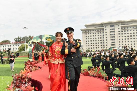 火箭軍某部101對新人軍營(yíng)結連理