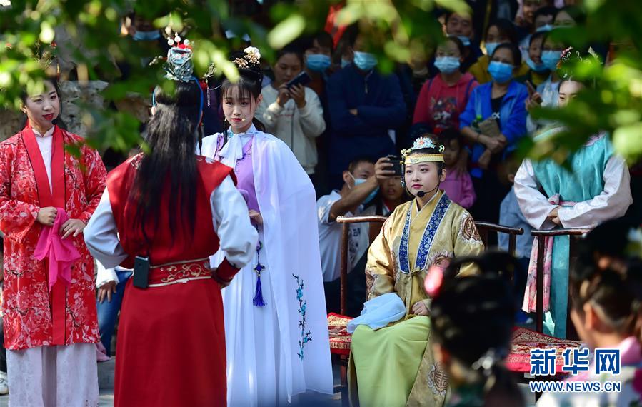 10月5日,在石家莊市正定古城榮國府景區,別具特色的實(shí)景演出吸引了眾多游客。 中秋和國慶假期期間,河北省石家莊市正定縣推出了豐富多彩的旅游文化活動(dòng),讓游客更好地暢游古城。