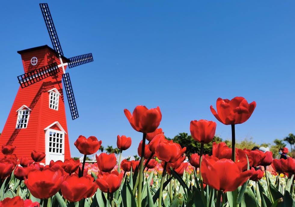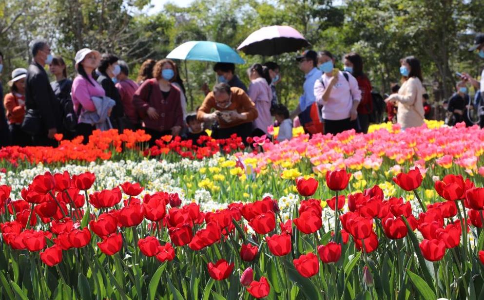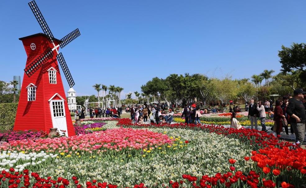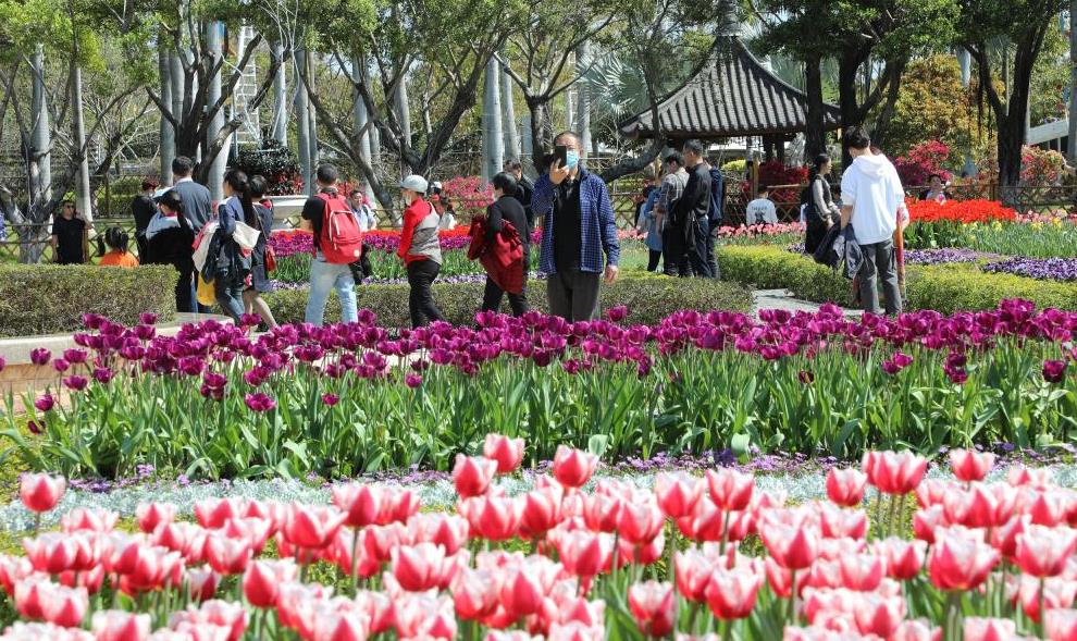 2月14日,福建廈門(mén)園博苑,近萬(wàn)株郁金香競相綻放,吸引眾多游客前來(lái)觀(guān)賞。