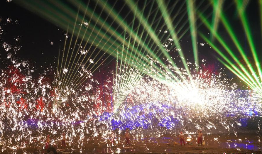 2月25日,農歷正月十四晚,河南開(kāi)封萬(wàn)歲山景區上演傳統民俗“打鐵花”,慶祝元宵佳節。圖為震撼的鐵花秀。