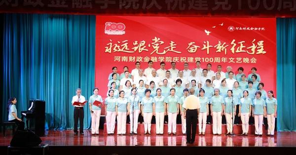 為慶祝中國共產(chǎn)黨成立100周年,扎實(shí)推進(jìn)黨史學(xué)習教育,6月8日下午,河南財政金融學(xué)院舉行“永遠跟黨走 奮斗新征程”慶祝中國共產(chǎn)黨成立100周年文藝演出。該校領(lǐng)導王雪云、李學(xué)志、王建生、王勇軍、王忠勇等與全校師生代表600多人觀(guān)看晚會(huì )。