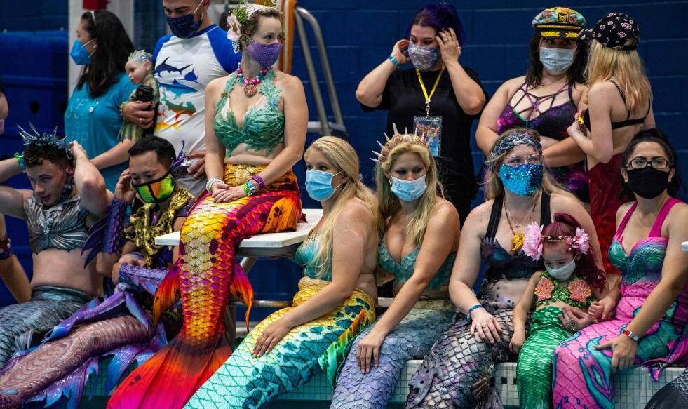 2021年8月7日,美國弗吉尼亞州馬納薩斯,“美人魚(yú)”參加MerMagic Con的拍照活動(dòng)。MerMagic Con被宣傳為世界規模最大的“美人魚(yú)大會(huì )”。大會(huì )的好些參與者是模特,看起來(lái)就像美國“美人魚(yú)”小姐選美大賽。而胖美人魚(yú)協(xié)會(huì )則希望把肥胖人士聚集在一起,宣揚任何人都可以成為美人魚(yú)的理念。不過(guò)成為一條“美人魚(yú)”并不便宜,大多數人在他們的尾巴和服裝上花了數千美元。