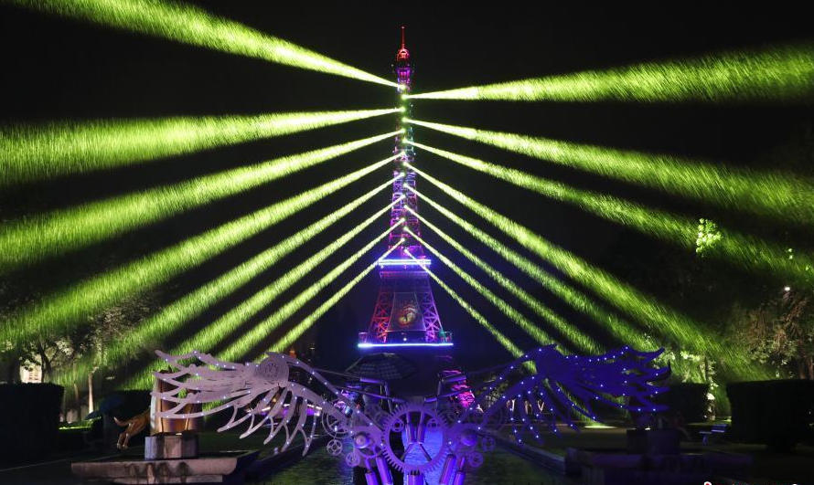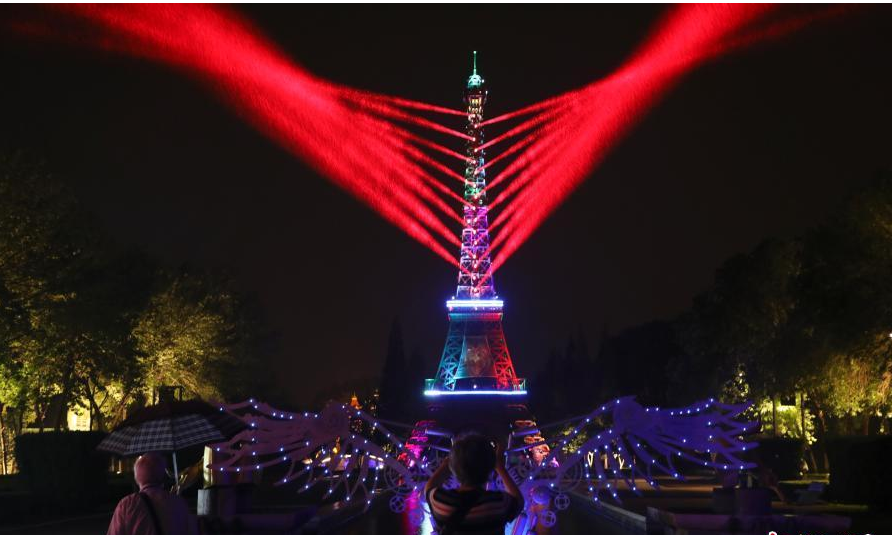 8月14日晚,北京世界公園內的“埃菲爾鐵塔”水光秀繽紛璀璨。北京世界公園“五洲奇妙夜”分12個(gè)主題光影巨秀,給人帶來(lái)美輪美奐的視聽(tīng)享受!巴嬉褂、攬風(fēng)情、觀(guān)光影、看巨秀”成為世界公園晚場(chǎng)“魔幻之旅”的新體驗。